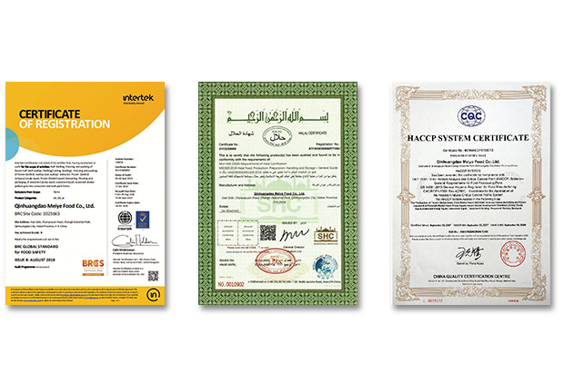 美燁所用設(shè)備設(shè)施均按出口食品生產(chǎn)企業(yè)注冊(cè)衛(wèi)生規(guī)范要求設(shè)計(jì)安裝,本公司已經(jīng)通過(guò)美國(guó)HACCP、英國(guó)BRC、清真HALAL認(rèn)證,并在美國(guó)FDA、歐盟、俄羅斯等注冊(cè)備案,現(xiàn)...